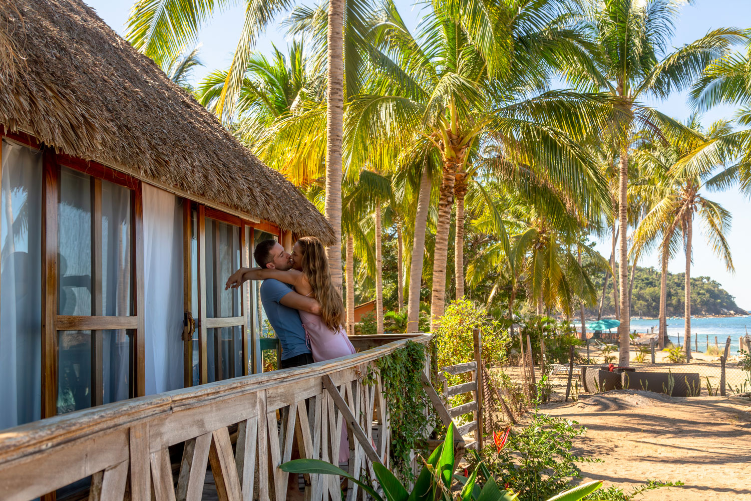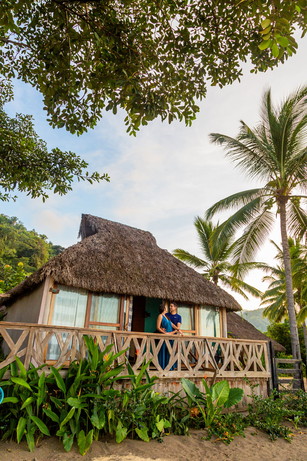 Escapada romántica frente al Mar y al Sur de Puerto Vallarta. Relájate y disfruta del arrullo de las olas desde la comodidad de tu cama King Size, decorada con hermosas artesanías de la región que añaden un toque de autenticidad local.